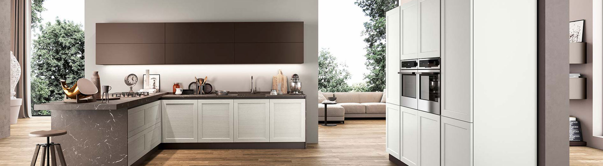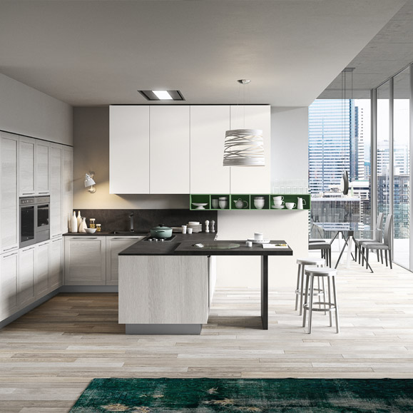 La collezione Punta Ala è compatta, ma completa. Caratterizzata fortemente dalla sua capacità di disegnare lo spazio, il modello si articola tra colonne, basi, pensili e penisole uniti da un piano snack di forte impatto. Elettrodomestici all'avanguardia racchiudono questo quadro armonioso ricco di spazi e capacità contenitive che regalano alla cucina un valore aggiunto.